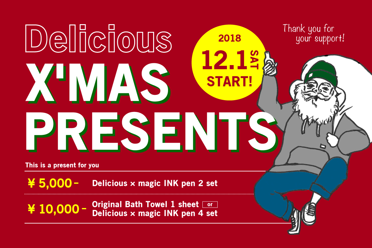今まで夏・冬で色々なグッズをプレゼントしてきましたが、今年は趣向を変えて別注で”マジックインキ”のDeliciousバージョンを作ってみました。