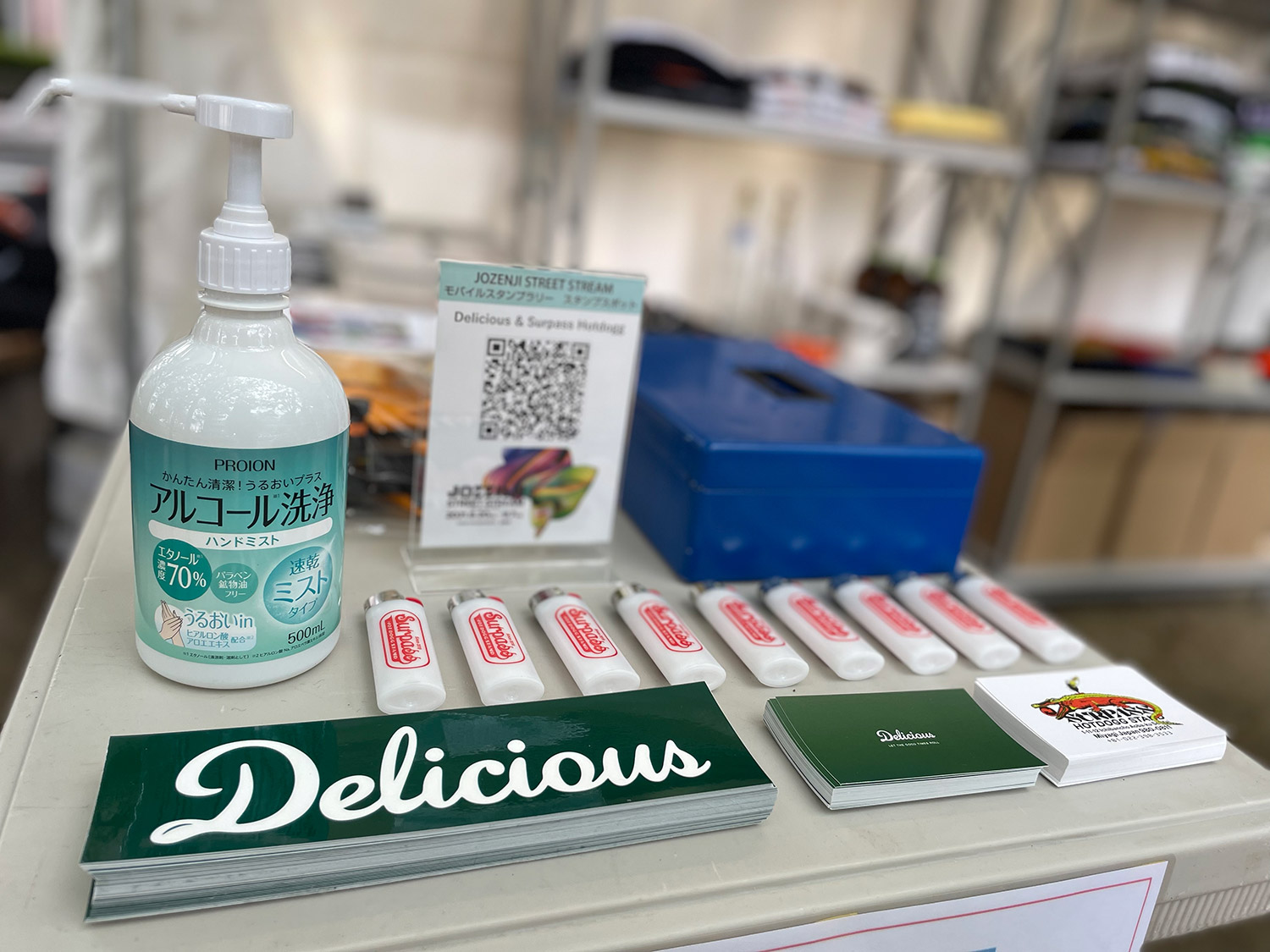 Deliciousブースには、Tシャツ類はもちろん、小物アイテムも充実してます。お店さながらの豪華な商品ラインナップ。お気に入りの1着が見つかると思います。店舗とハシゴしても、お買い物が楽しめますね。期間限定ブースですので、是非お立ち寄りを・・・