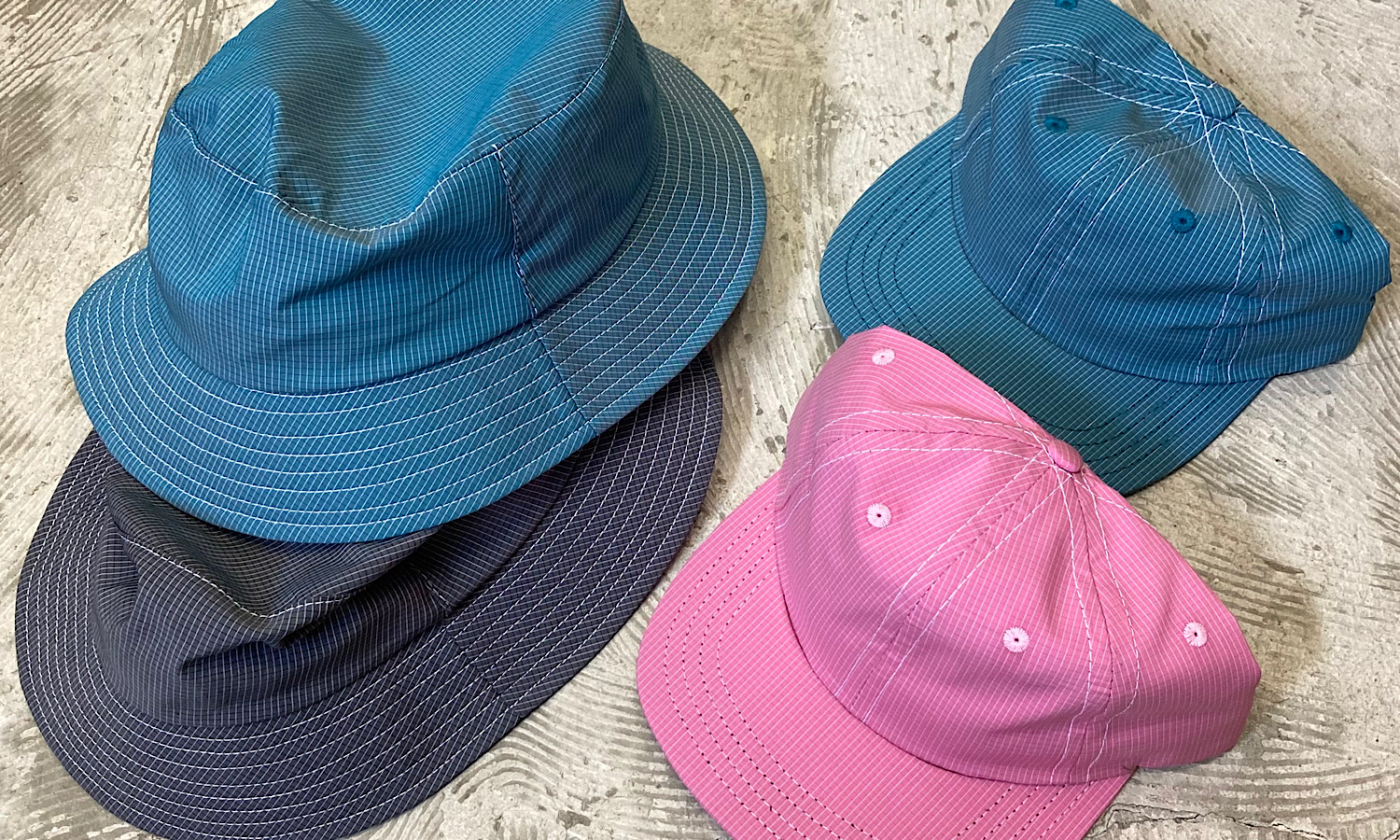 こちらはコットンとナイロンのリップストップ生地で作られたキャップ,ハットになります。リップストップの特徴としては軽量かつ高強度なところ。名前の通り「Rip(裂ける)ことをStop(止める)」といった強度のある素材としてアウトドア用品に多く使われている印象ですね。