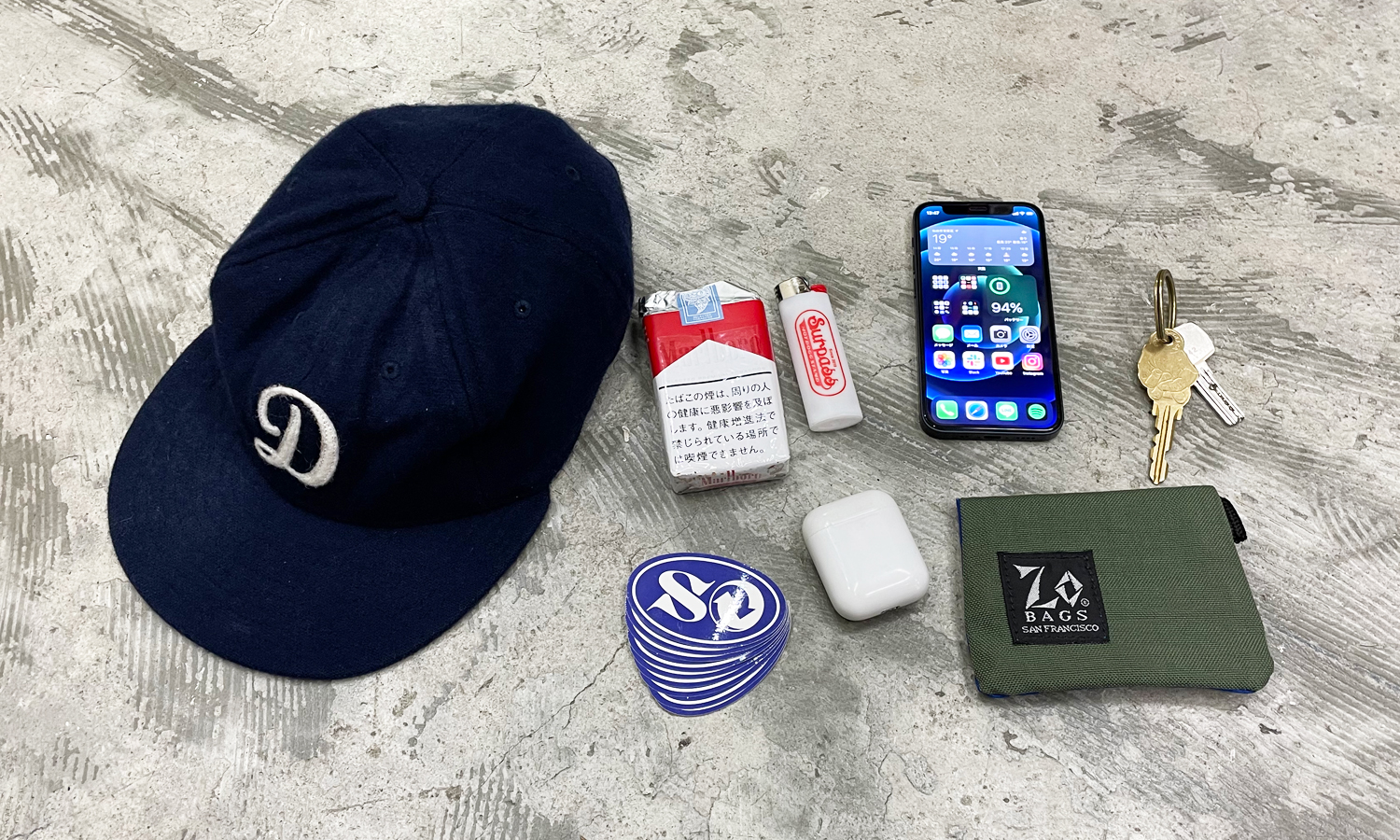 OLD & NEW by Ryo Sato 2021.09.25 | STAFF COLUMN 単に所持品、身につけているものですが、特にD LogoのEFFはお気に入りで毎年夏以外被ってる気がします。 確か買ったの3年前の今時期だったような。何回か手洗いで洗ってご覧の通りくたびれていますがまだまだ今年も被ります。 新たにまた今年も再販するなや否や。乞うご期待。 Delicious Sendai TEL +81 22,398,3533