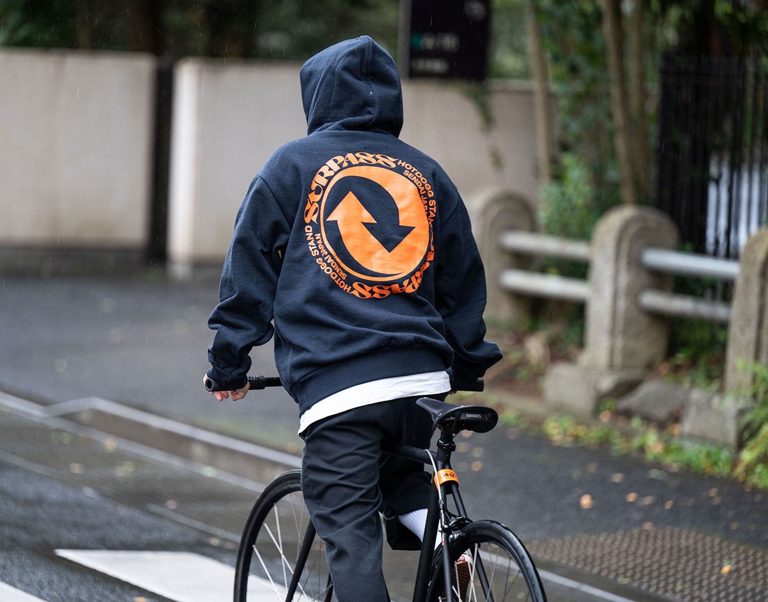 P氏…このフーディーは「POWERS」のデザイナーを務める、『Eric Elms』にデザインしてもらったロゴを大きくバックプリントにしました。