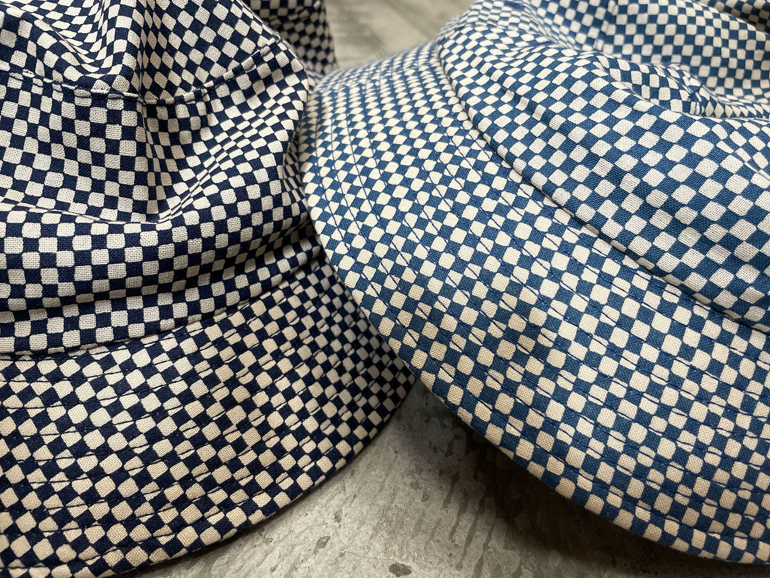 細かなチェック柄がCOOLなバケットハット。今ならネイビーとブルーお好きな方を選べます。